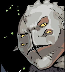 Bub tried to attack Xander with his axe when he and Dawn were stuck on his native dimension Anharra. Fearing Dawn's god-like powers, he then promised to show them what to eat, and apologized for his difficulty controlling his urges. Dawn protected him and other locals from "the devouring rain," and he explained their struggle on living in temporary shelters soon consumed by the acid rain. Xander asked why didn't they made slanted roofs, so it would run off, for which Bub expressed curiosity.[1]