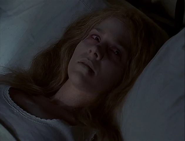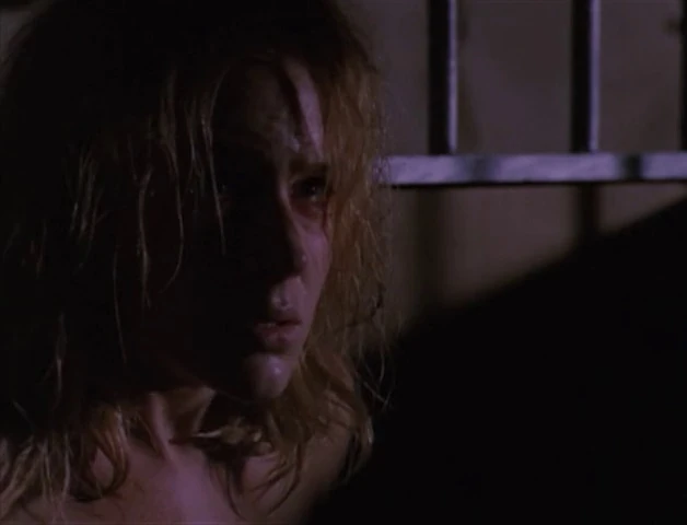 Darla came face to face with Buffy the night prior to the Harvest, when she seduced Sunnydale High student Jesse McNally.[19] Even though Jesse was intended to be an offering to the Master, Darla bit Jesse, for which she would be reprimanded. Despite facing Buffy, however, Darla managed to take Jesse underground thanks to the intervention of Luke, the Master's leading acolyte. The following night, Darla joined Luke, the newly sired Jesse, and other vampires in their attack against the Bronze, where Luke intended to perform the Harvest in order to release the Master from his mystical prison. While Luke, Jesse, and other vampires were dusted by Buffy and the Scooby Gang, Willow Rosenberg threw holy water at Darla's face to repel her from Rupert Giles.[20]