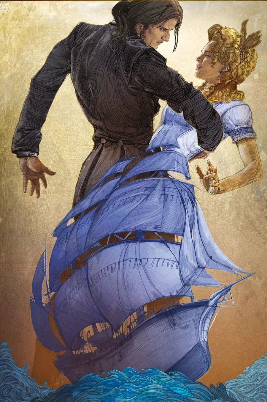 Sometime in the early 19th century, time-traveling Angel, Fred, and Illyria met Darla and Angelus on a voyage from Australia to England. Aboard the ship Galene, Darla had been trying to take a jewelled beetle for her collection, seducing the owner into discovering its hiding place, only to be interrupted by a jealous Angelus. Future Angel explained to Fred he remembered the voyage had been odd, with rumors that someone had brought a real treasure on-board, a mystical cursed piece of jewelry. Fred then discovered where the owner had been hiding it, but was found by Darla and Angelus, who attacked her in an attempt to take the beetle.[11] Angel arrived in time to rescue Fred, but a demonic beetle infestation was inadvertently set off over all sailors aboard,[12] causing the destruction of the ship.