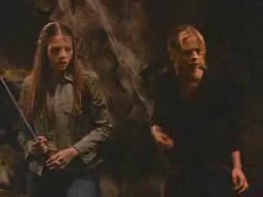 Dawn helps Buffy fighting demons.