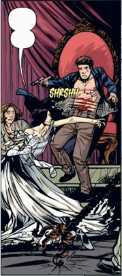 When John succeeded in extracting Spike's soul, Spike described that, even without it, he was still capable of becoming good. In the meantime, Drusilla attacked Jeremy after seeing Beck kissing Spike. Willow informed Spike that the target of the soul-extracting circle was able to choose another person to receive his soul, and he chose Drusilla.[29] However, the presence of a soul only served to torture her even more into instability. John then revealed that Drusilla had become during the fall of Los Angeles; she had only become mentally unstable again because Wolfram & Hart had put her on medication. John had planned to "fix" her, but being re-ensouled might had destroyed her. Drusilla killed John, and Spike then put her in the magic circle to extract the soul, Drusilla choosing Spike to be the one to receive it.[30]