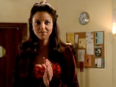 - Hypnosis: As a vampire, Drusilla had the inherent vampire power of hypnotizing people, which enabled her to mesmerise her prey and render them helpless — all she had to do was to catch her victim's gaze, point her fingers towards their eyes, and whisper to them, eventually putting them in a trance. This was one of Drusilla's most dangerous abilities, for the Master himself used a similar version of it to paralyze Buffy,[38] and Angel (a far older vampire than Drusilla was) was never able to master this ability, but she appeared to be a true mistress of it — she used it to murder Kendra, taunt and threaten Dalton, and project false imagery into her victims (she once convinced Giles that she was really Jenny Calendar[1]). This power also allowed her to control other entities like Betta George, Beck, and a Lorophage demon.[citation needed]