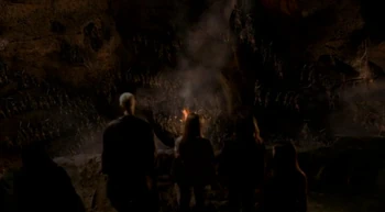 According to Willow Rosenberg, the Hellmouth was responsible for the many churches located in Sunnydale as it made people "pray harder".[16] Spike took a severely weak and injured Drusilla to the Sunnydale Hellmouth in hopes that its energy would restore her to full strength.[17] It was credited for the hysteria that gripped Sunnydale following the First Evil's uprising, causing most of the population to flee and the Sunnydale police to resort to vigilante actions.[18]