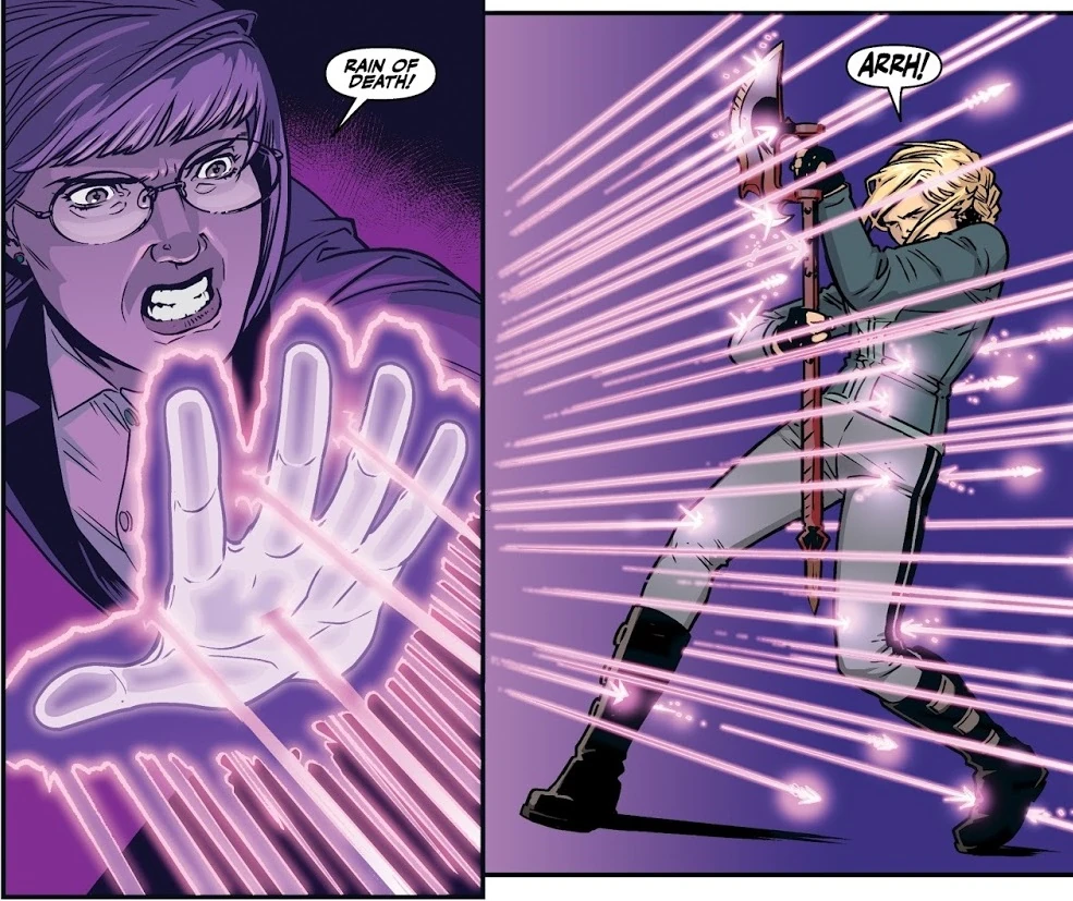 Rain of Death is an offensive spell used by Joanna Wise during her fight with Buffy Summers and the Scooby Gang. The spell consisted of numerous rapid-fire energy projectiles launched from the caster's hand.