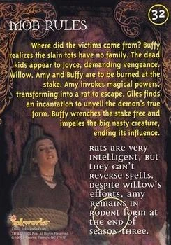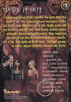 Season Three Premium Trading Cards is a collection of trading cards based on the third season of Buffy the Vampire Slayer. Inkworks released it on September 3, 1999, with a total of 122 cards.