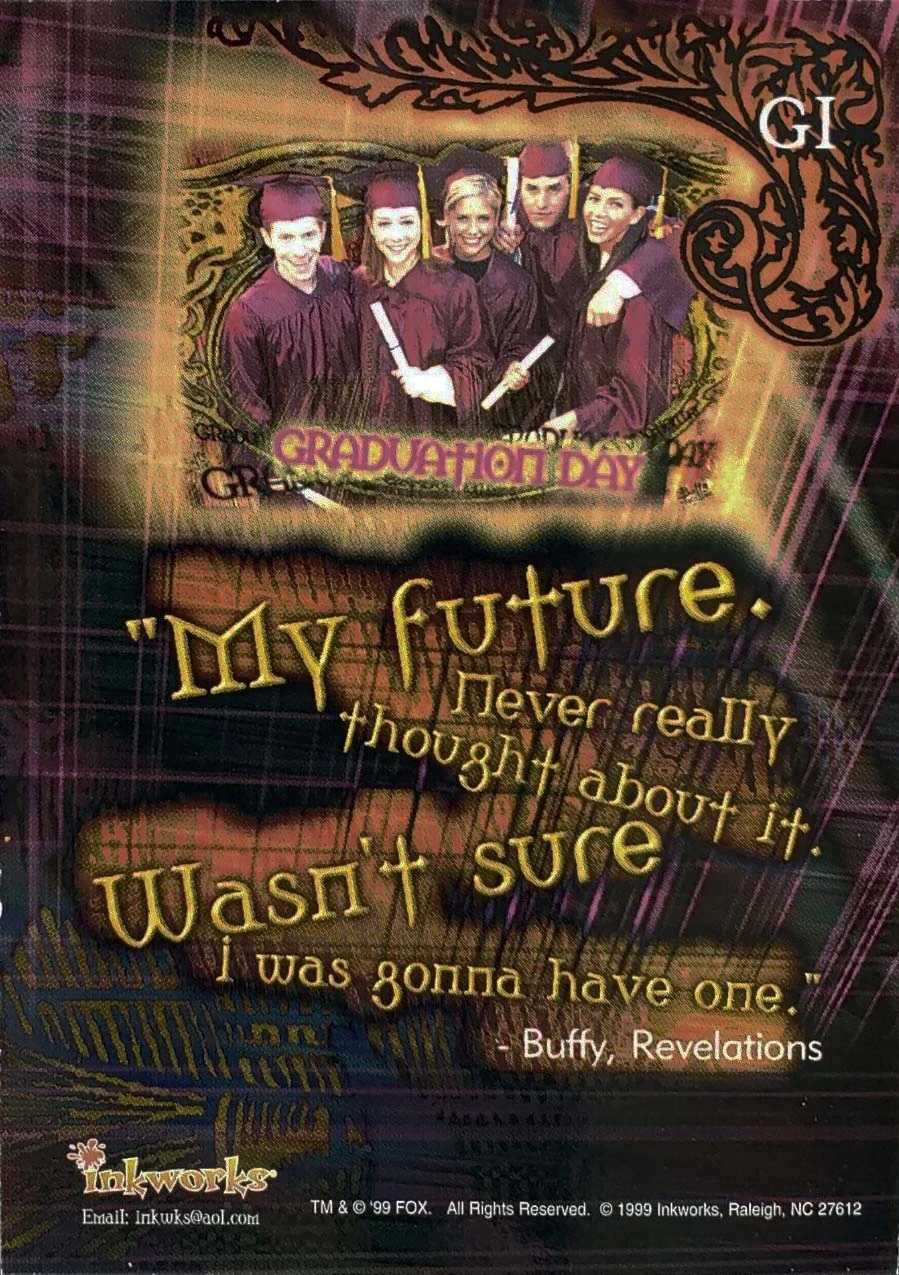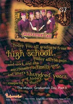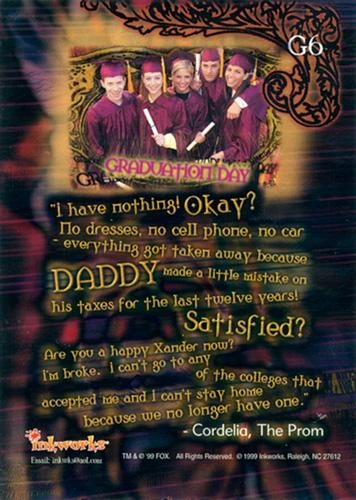 - The Season Three Premium Trading Cards was available in packs containing 7 cards each, as well as in display boxes containing 36 packs each. Inkworks also produced a collector binder and an uncut sheet for the "Graduation Day" puzzle.