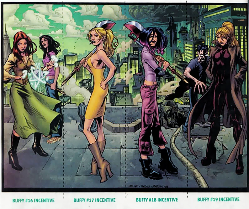- An exclusive print by Karl Moline, Andy Owens, and Michelle Madsen promoting "Time of Your Life" arc was available to direct market retailers, in which a fourth of the scene was available as incentive for each issue.