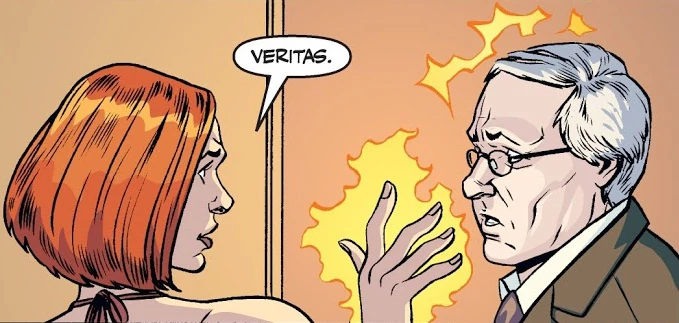 To interrogate the Vice President of the United States on the Pandora Project, Willow cast upon him a truth spell using the magic word "Veritas." It made him act impulsively and relaxed, saying everything whatever came into his mind about what he was asked, while smiling drunkenly. However, a pre-existing spell prevented him to reveal who the leader of the organization was.[2]