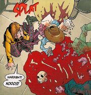 After being discarded by Twilight and discovering his identity, Amy, Warren, and the General sought a temporary alliance with the Scoobies.[18] Warren joined them in the fight for the Seed of Wonder in Sunnydale,[19] before he and Amy were abandoned the General.[20] After traveling to Venice, Amy pondered over going back to help the Scoobies, but Warren adamantly refused, reminding Amy that Buffy and Willow were "the enemy." After Buffy destroyed the Seed and all magic, Warren, without Amy's magic to keep him alive, collapsed into a puddle of blood and bones.[9]