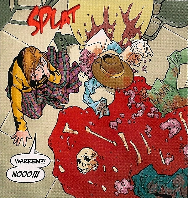 After being saved from death by Amy, Warren sought vengeance of both Buffy and Willow for everything they had done to him, attempting to perform a lobotomy on Willow.[8] Additionally, Warren refused to go back and help them in the battle for the Seed of Wonder, despite the world itself being at risk.[9]