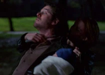 Wesley dying in the arms of Illyria, disguised as Fred.