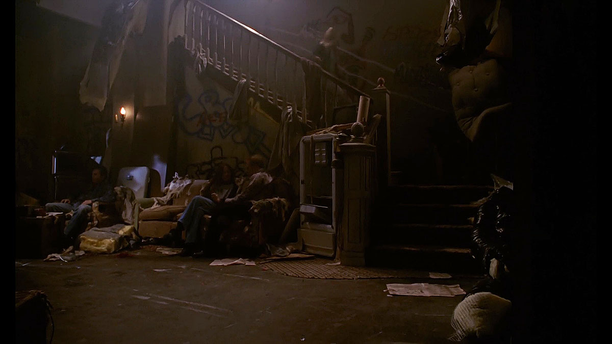 - Unidentified in the series, the place was referred in the shooting scripts as "abandoned tenement"[3] then "vampire drug den". It was described: "Spike leads Buffy up some back stairs and into the first floor of a seedy flophouse that looks like a cross between a crack house and a low-rent whorehouse. The walls are covered in graffiti, the floors littered with debris and mattresses... It's dark, but we can see that the place is inhabited by a sordid bunch of lowlife humans and vampires."[4]