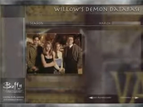 Willow's Demon Database is a feature included in the final three seasons of Buffy the Vampire Slayer on DVD. A DVD-Rom feature, once you place the disc into your computer the program can be downloaded and pages on several of the villains of the series. The start-up features a video of a log-in typed by Willow, and it has her quote "We can finish this another time" (from the episode "The Pack") when the program is closed.